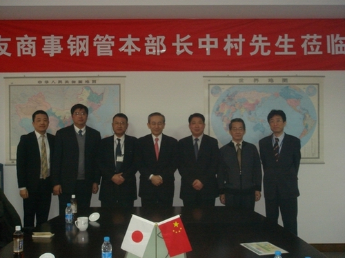 2010年2月4日 日本住友商事株式會社鋼管本部長中村勝、住友商事(中國)企業集團中國金屬部門長輔佐新宮宏司、住友商事(上海)有限公司金屬部門長輔佐木戶、金屬四部部 長費偉民等來我公司考察,并就本公司發展進行了深入探討。公司董事長、總經理陳玉琪、副董事長山田和夫、副...