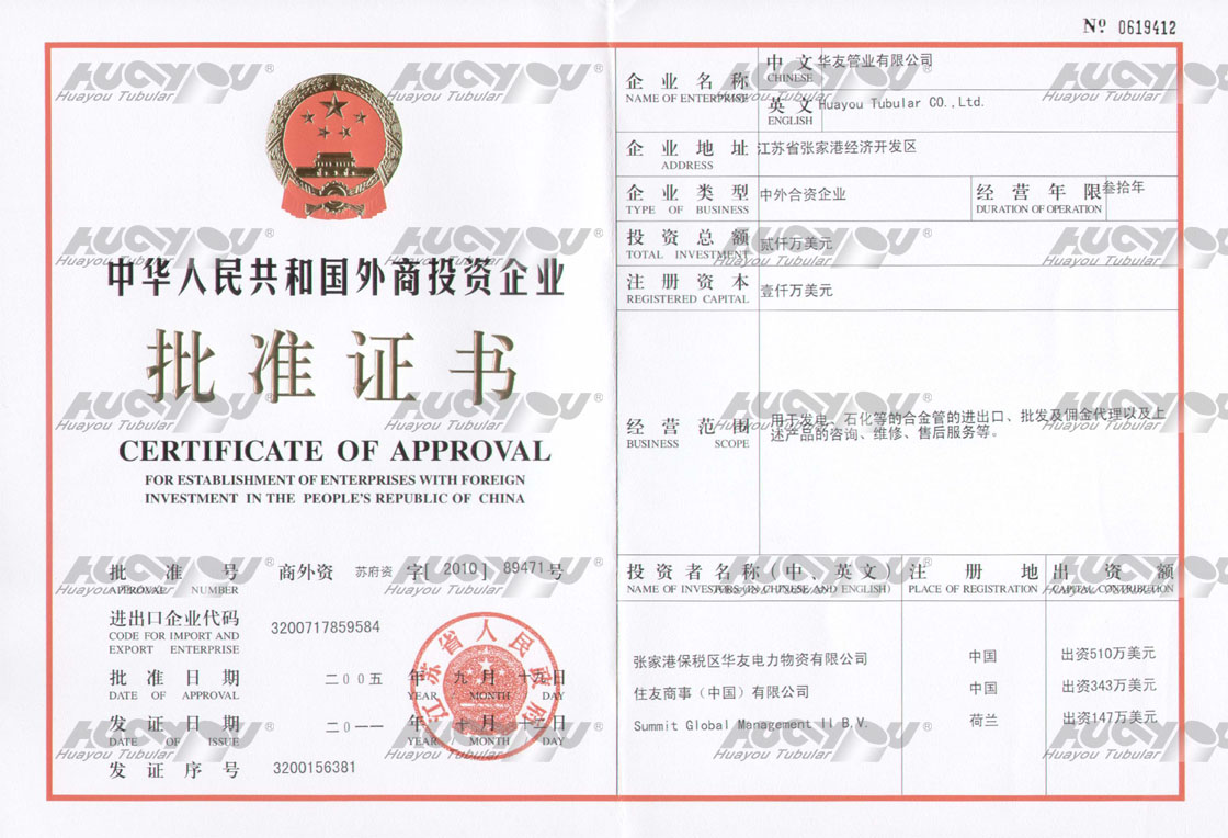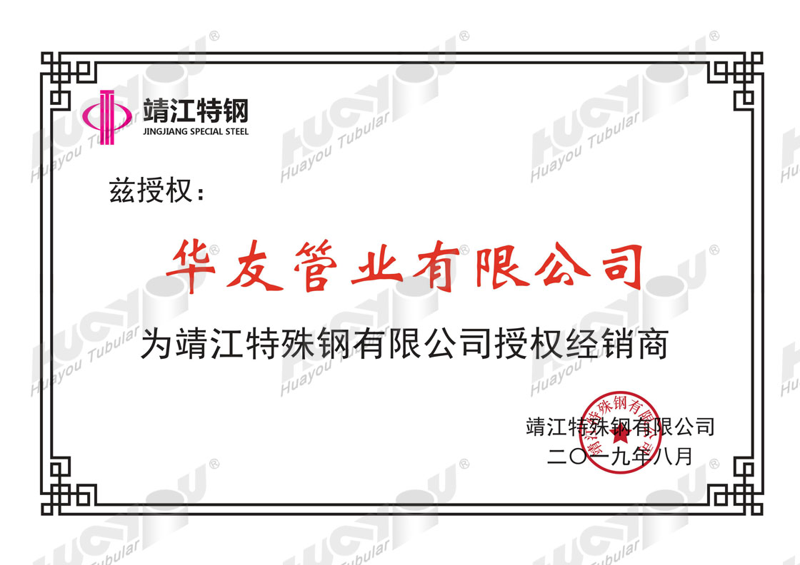 衡陽(yáng)華菱鋼管經(jīng)銷授權(quán)證書